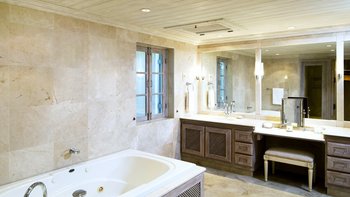 Each en suite bedroom has been thoughtfully designed for comfort, with most opening to private terraces that frame the sea views. The standout master wing offers a spacious bedroom with its own living area, a walk-out oceanfront terrace, and a marbled bathroom crowned by a hand-painted domed ceiling. A private elevator adds to the sense of ease and exclusivity.