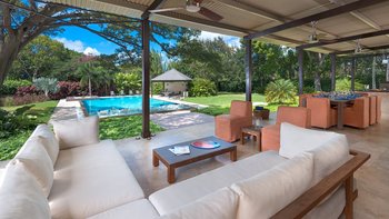 Eingebettet zwischen üppigen Bäumen und tropischem Laub, ist das Happy Trees ein schönes und geräumiges Anwesen in schönen Barbados. Dessen Anwesen verbindet modernes Dekor und hervorragendem Komfort und verfügt über einen luftigen OFFENER GRUNDRISS Wohn- und Essbereich, der zu einer großen, schattigen Terrasse führt. Deren voll ausgestattete Küche ist hell und modern, mit großen Doppeltüren, die auf die Terrasse und den Pool führen. Im Südflügel der Villa finden die Gäste vier klimatisierte Schlafzimmer mit schönen Badezimmern. Aller dieser Schlafzimmer blicken auf den Garten und lassen das natürliche Licht herein, während Sie sich entspannen.