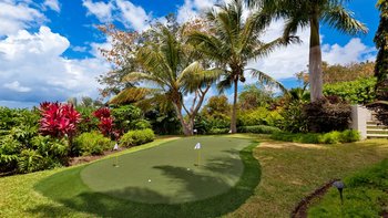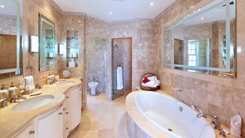 Im Landesinneren und mit Blick auf die Karibik wurde diese eindrucksvolle Villa vom berühmten Sandy Lane Hotel inspiriert, dessen geräumige Innenräume Inselleleganz mit modernem Design verbinden. Umgeben von üppigen Gärten, mit eigenem Putting Green unter Palmenschatten, befindet sich die Eingangsebene der Villa im Obergeschoss, wo sich ein luftiges Foyer auf einen Babyflügel konzentriert und sich auf eine überdachte Terrasse mit Blick auf den stilvollen Pool erstreckt. Links davon ist die moderne Küche gut ausgestattet; und es gibt Glamour und einen Glastisch für zwölf Personen im formellen Speisesaal, der durch drei Wände mit faltbaren Glastüren zur Brise und zu den Mahagonibäumen geöffnet werden kann. Im gegenüberliegenden Flügel befindet sich die großzügige Master-Suite mit schattigem Balkon und großem Wohnzimmer. Und zwei geschwungene Treppen führen in die untere Ebene mit drei Kingsize-Schlafzimmern, einem Fitnessraum und einem schönen Wohnzimmer, das zum Pool hin offen ist. Der Küchenchef-Service rundet das Verwöhnbild ab, und Sugar Hill verfügt über ein Clubhaus und Restaurant, Championship-Tennisplätze und eine Strandanlage, 3 km entfernt, im Fairmont Royal Pavilion Hotel. Der Resort ist 1 km vom Golfplatz Royal Westmoreland und 3,2 km von Holetown entfernt.