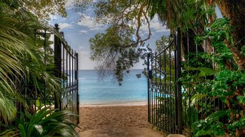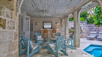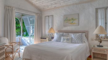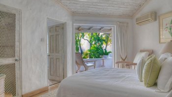 Kleine, aber üppige tropische Gärten führen von diesem hellen und luftigen Haus direkt zu den weichen Sandstränden des berühmten Gibbes Beach. Eingebettet in sie und natürlich von hohen Bäumen abgeschirmt, ist ein Tauchbecken in eine Korallensteinterrasse versenkt, angrenzend an eine Bar und einen Grill, ein schöner Esstisch im Freien und ein überdachter Sitzbereich, der in das Haus führt. Dessen geräumige Wohn-/Esszimmer ist stilvoll in sanften neutralen Farbtönen eingerichtet, und in drei klimatisierten Schlafzimmern sorgen ausgewählte Stoffe für die Eleganz des Landhauses. Deren Hauptschlafzimmer verfügt über ein eigenes Duschbad und einen eigenen Balkon, während sich die anderen beiden Zimmer ein zweites modernes Duschbad teilen.