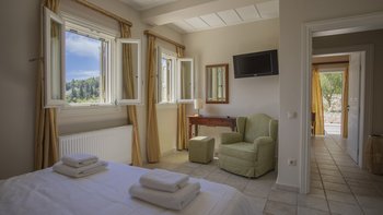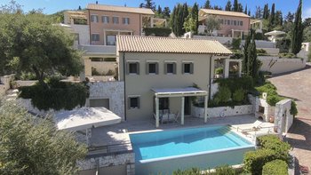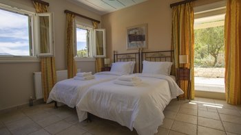 Der herrliche Meerblick über die Boote, die im Hafen von Fiscardo nach Ithaca fahren, und die perfekte Lage am Hang machen diese hübsche Villa sehr beliebt. Delias schöne Terrasse verfügt über einen charmanten Infinity-Pool, einen Esstisch im Freien und Platz zum Entspannen und den Blick auf das Meer zu genießen. Denen Innenräume sind einfach, aber frisch und komfortabel, im Erdgeschoss befindet sich eine OFFENER GRUNDRISS Küche und ein Esszimmer, ein reizvolles Wohnzimmer und ein Duschbad. Im ersten Stock befinden sich ein Hauptschlafzimmer mit Doppelbett und ein Zweibettschlafzimmer mit jeweils eigenem Duschbad und privaten Balkonen, was Delia perfekt für Familien oder Paare macht. Nur einen kurzen Spaziergang vom Haus entfernt, bietet Fiscardo zahlreiche Restaurants, Bars und Geschäfte und wunderschöne Kiesstrände sind weniger als 2 km entfernt. Delia teilt sich das Anwesen mit seinen Schwestervillen Yolanda und Lyra, die für größere Gruppen zusammen gebucht werden können.