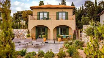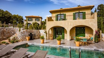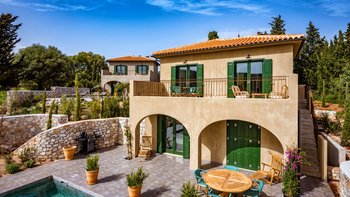 Der bezaubernde Blick über den Hafen von Fiscardo von der Dachterrasse des Odele ist eines der Highlights dieser schönen Villa und die Besucher werden die Nähe zu den stilvollen Restaurants und Cafés von Fiscardo lieben. Der Eigentümer dieser Immobilie hat darauf geachtet, dass die Gäste gut betreut werdenund Es gibt viele zusätzliche Extras wie einen gefüllten Kühlschrank mit Frühstücksartikeln bei der Ankunft und eine kostenlose Bar mit einer Auswahl an Spirituosen und Fahrrädern, die Sie ohne Aufpreis nutzen können. Denen Villa ist sehr gut ausgestattet und stilvoll eingerichtet mit zwei großen Doppelzimmern im Erdgeschoss (jedes kann als Zweibett eingerichtet werden) mit eigenem Duschbad und Zugang zur Poolterrasse. Im ersten Stock gibt es ein offenes Grundriss Wohnzimmer, ein Esszimmer und eine Küche, die zu einer großen Terrasse mit herrlichem Blick auf das Meer führt. Draußen gibt es einen sehr attraktiven Swimmingpool und eine gemütliche Terrasse mit Grill und Kräutergarten (für die Gäste zur Selbsthilfe). Odele teilt sich das Anwesen mit seinen Schwestervillen Merope und Fauna und ist nur fünf Minuten zu Fuß (100m) vom Hafen und Restaurants von Fiscardo entfernt.