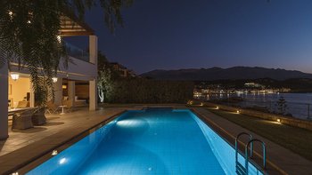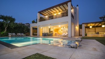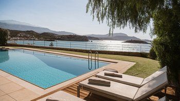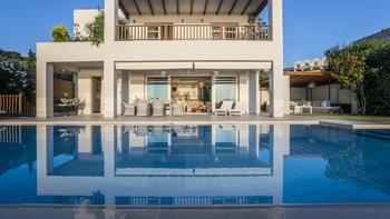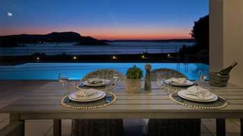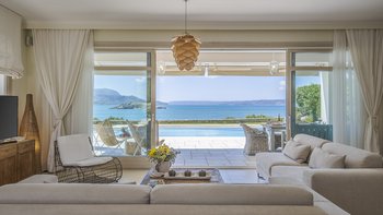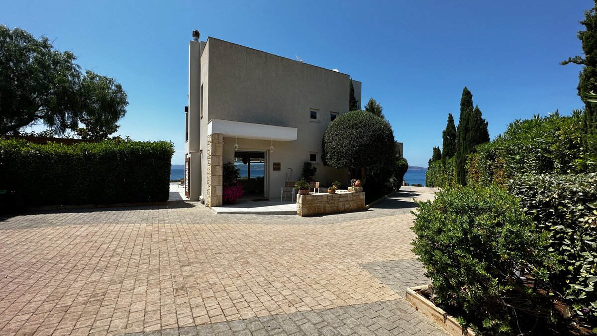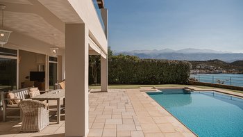 Diese schicke und moderne Luxusvilla liegt oberhalb des Wassers am Rande eines hübschen Fischerdorfes und bietet hohe Standards, feine Einrichtungen und einen herrlichen Blick auf die Küste und das kretische Meer.