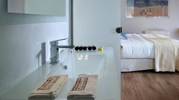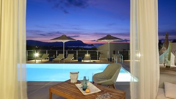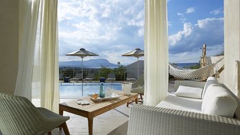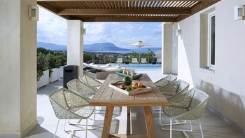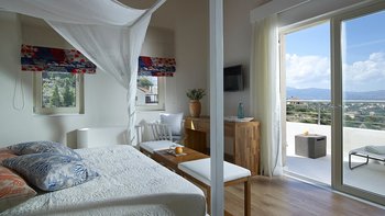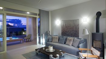 Im Außenbereich befinden sich eine Hängematte auf der Sonnenterrasse und ein Essbereich im Freien mit Blick auf den Infinity-Pool. Der Aoriete liegt 300 m vom Dorfplatz Kokkino Chorio, 1,5 km vom unberührten Strand Koutalas und 4 km vom lebhaften Almyrida-Strand mit Wassersportmöglichkeiten, Cafés und Fischtavernen entfernt.