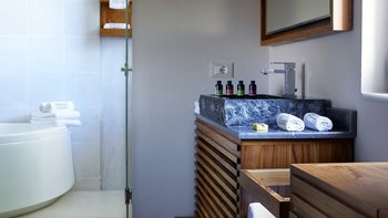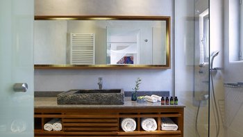 Dieses Haus strahlt Stil und Qualität aus, von den luftigen Zimmern bis zu den sehr modernen Badezimmern, und ist so ruhig und schön wie die ruhige Aussicht von den Terrassen. Deren Villa verfügt über einzigartige Wandbehänge und eindrucksvolle Kunstwerke, um das Dekor in kühlen Naturfarben zu ergänzen. Blasse Aqua- und Puderblau Akzente weichen das Aussehen einer eleganten und modernen Essküche ab, die sich ein paar Stufen über dem Wohnzimmer mit Holzofen und Schiebetüren zu einer stilvoll eingerichteten Lounge im Freien erhebt. Jedes der vier Schlafzimmer verfügt über WLAN, Sat-TV, luxuriöse Bettwäsche und ein eigenes Bad oder eine Hydromassage-Dusche. Einer befindet sich im Erdgeschoss, zwei Balkone mit Meerblick, und die Master-Suite, die das Haus krönt, verfügt über ein Kingsize-Himmelbett, eine Mini-Küche für den Morgenkaffee und eine Dachterrasse mit Whirlpool und fantastischem Blick auf das Meer und die White Mountains.