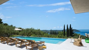 Diese neu erbaute Villa befindet sich über Dubrovnik und bietet herrlichen Meerblick, stilvolle moderne Möbel und einen beheizbaren Infinity-Pool.