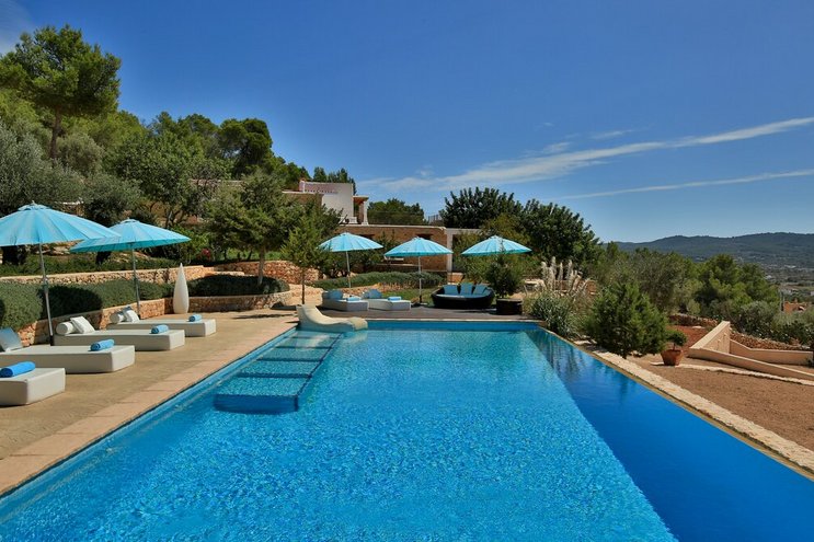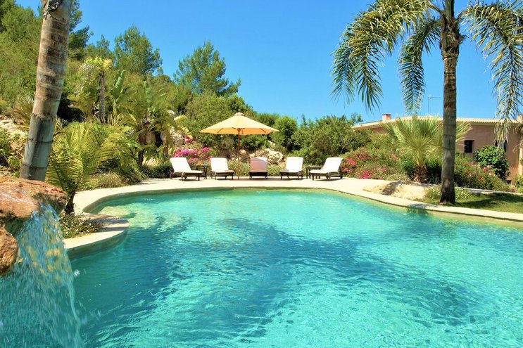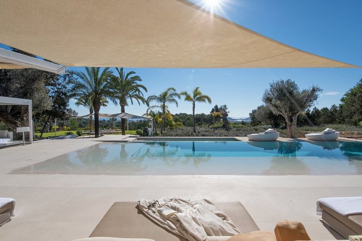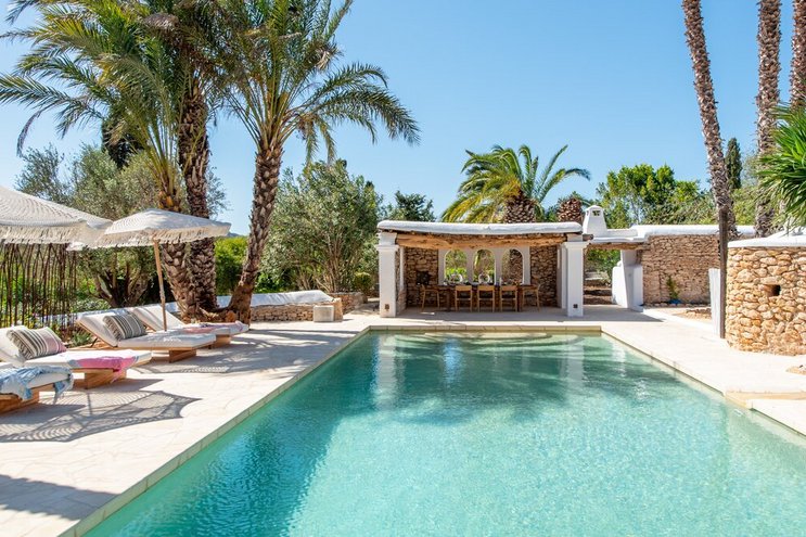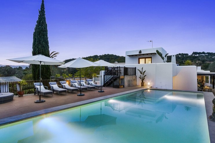 Größere Gruppen werden dieses luxuriös renovierte Bauernhaus in der Nähe der Bucht von San Antonio lieben – ein 300 Jahre altes Anwesen mit sechs Schlafzimmern und einem privaten Infinity-Pool.