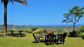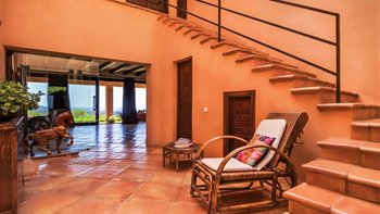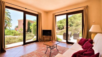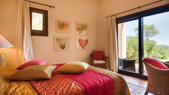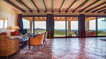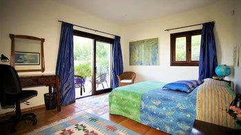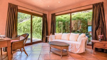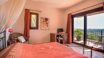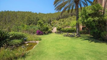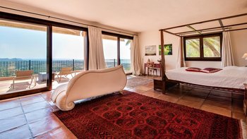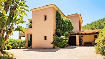 Die Villa Violeta liegt ruhig auf einem Hügel inmitten wunderschöner Gärten und bietet einen herrlichen Panoramablick auf die Umgebung. Im Inneren ist das Anwesen elegant in einem einzigartigen alten Ibiza-Stil eingerichtet, mit kunstvollen Möbeln und farbenfrohen Kunstwerken. Im Erdgeschoss befindet sich ein großes, OFFENER GRUNDRISS Wohnzimmer, das sich wunderschön auf die Terrasse und die Gärten öffnet. Es gibt auch eine voll ausgestattete Küche, einen Arbeitsbereich und ein Schlafzimmer mit Doppelbett mit Bad. Im Obergeschoss finden Sie drei weitere Schlafzimmer mit Bad. Dessen separate, neu renovierte Nebengebäude ist ideal für einen Urlaub mit mehreren Generationen. Es verfügt über ein Schlafzimmer, ein eigenes Bad, eine Küchenzeile und einen Wohnbereich für Gäste, die ein Extra an Privatsphäre bevorzugen.