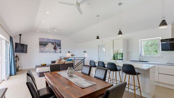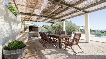 Im Inneren der Villa Crystal besticht durch eine einladende, offene Raumaufteilung, die die Zweisamkeit fördert. Der moderne Wohnbereich geht nahtlos in eine gut ausgestattete Küche über, die sich ideal für kulinarische Abenteuer eignet. Jedes der geräumigen Schlafzimmer ist auf Komfort durchdacht, während der Unterhaltungsraum für Unterhaltung für Gäste aller Altersgruppen sorgt. Des Essens im Freien ist ein Highlight hier, mit einem überdachten Bereich und einem Grillplatz, der sich perfekt für frische Mahlzeiten im Freien unter dem Sternenhimmel eignet.