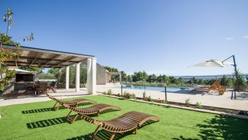 Das Äußere der Villa verspricht einen großzügigen Außenbereich, der durch den einladenden beheizten Infinity-Pool mit Liegestühlen hervorhebt wird – ideal zum Sonnenbaden. Denen Gäste können von verschiedenen Terrassen aus einen atemberaubenden Blick genießen und eine idyllische Kulisse zum Entspannen schaffen. Der Strand ist nur 700 Meter entfernt und die Geschäfte und Restaurants sind leicht zu erreichen. Deren Villa Crystal bietet Privatsphäre und Erreichbarkeit, was sie zu einer idealen Wahl für diejenigen macht, die ein unvergessliches Küstenerlebnis suchen.