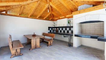 Der Außenbereich der Villa ist wirklich beeindruckend und erstreckt sich über 1.500 Quadratmeter wunderschön angelegten Gartens. Denen Gäste können sich auf der großen Terrasse sonnen, ein erfrischendes Bad im Privater Pool nehmen oder unter dem bezaubernden Pavillon mit Außenküche und Grillmöglichkeiten im Freien speisen. Deren ruhige Umgebung ist perfekt zum Faulenzen, Geselligkeit oder einfach nur zum Eintauchen in die mediterrane Atmosphäre. Privatparkplätze und üppiges Grün tragen zu einem Gefühl von Exklusivität und Entspannung bei.