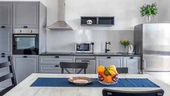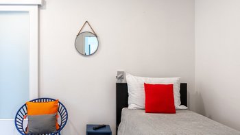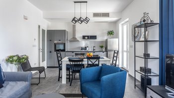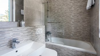 Das Erdgeschoss der Villa Oasis ist durchdacht eingerichtet, um Entspannung und Verbundenheit zu fördern. Hier finden die Gäste ein geräumiges Wohnzimmer mit modernen Möbeln und großen Fenstern, die den üppigen Garten und den Poolbereich umrahmen, vor, während die voll ausgestattete Küche auf dieser Ebene die Zubereitung von Mahlzeiten zu einem Vergnügen macht. Deren Aufteilung im Erdgeschoss umfasst auch drei Doppelschlafzimmer, alle mit eigenem Bad, was für Komfort und Zugänglichkeit für Gäste sorgt, die lieber Treppen vermeiden möchten.