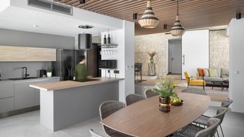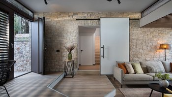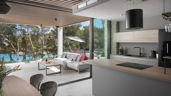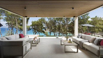 Treten Sie ein in das elegant gestaltete Interieur auf drei Ebenen, wo moderner Komfort auf die natürliche Schönheit der dalmatinischen Küste trifft. Jedes Zimmer ist mit hochwertigen Möbeln und cleveren Designelementen geschmückt, während die großen Fenster den Raum mit natürlichem Licht durchfluten und einen ungestörten Blick auf das türkisfarbene Wasser bieten.
