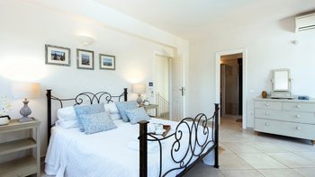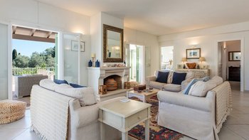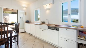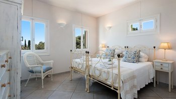 Auf dem Hügel von St. Stephano gelegen, hat Angeliki das Gute aus beiden Welten. Dieser Villa bietet eine unglaubliche Aussicht von ihrer vollkommen ruhigen Lage, doch der Spaziergang hinunter zu den Restaurants, Bars und Geschäften von St. Stephano dauert nur zehn Minuten. Das Innere des Hauses ist geräumig und leicht und wurde wunderschön in frischen neutralen Farbtönen mit geschmackvollen Akzenten von Pastellfarben in den weichen Möbeln eingerichtet. In einem offenen Grundriss können die Gäste mit bequemen Sitzgelegenheiten und Smart-TV entspannen oder ihre Mahlzeiten in der gut ausgestatteten Küche mit Esstisch zubereiten, falls sie sich entscheiden, drinnen zu speisen. Dessen geräumige Terrasse bietet einen unvergleichlichen Blick auf das Meer, wo der Zugang von der Küche direkt zum Essbereich im Freien führt. Der einladende Infinity-Pool ist das Juwel in Angelikis Krone, während ein weiterer entspannender Sitzbereich willkommenen Schatten vor der Sonne bietet.