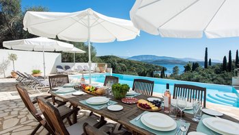 Vom beeindruckenden Infinity-Pool aus bietet das schöne Angeliki einen atemberaubenden Blick über die Bäume in Richtung St. Stephano und ist nur einen kurzen Spaziergang vom Dorf entfernt.