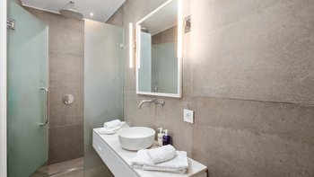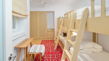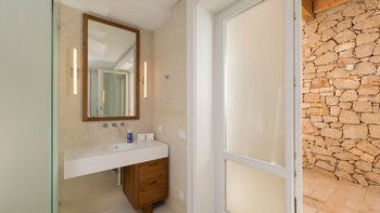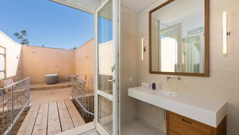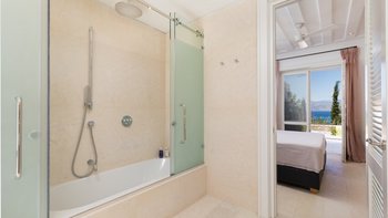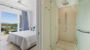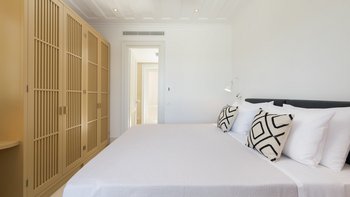 Es gibt vier schöne Schlafzimmer im Erdgeschoss, die alle mit eigenem Bad ausgestattet sind und drei von vier zur Poolterrasse führen. Ein TV-Raum vervollständigt diese Etage. Der Master-Suite befindet sich im Obergeschoss und verfügt über ein Kingsize-Bett und ein Bad en suite sowie einen hübschen privaten Innenhof mit Außendusche, freistehender Badewanne und Sitzbereich.