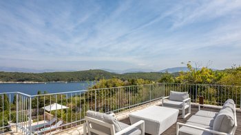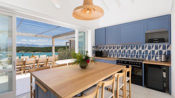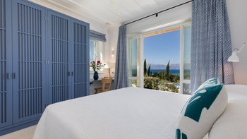 Antheia, ein wunderschönes Anwesen mit Blick auf das Meer, ist ein luxuriöses Haus in einer vollkommen privaten Umgebung, während Annehmlichkeiten und ein hübscher Kiesstrand in Avlaki nur 1 km entfernt sind. Denen Villa ist hervorragend entworfen und aus lokalem Stein gebaut, modern und geräumig. Ein großer Wohn- und Essbereich blickt auf das Meer durch raumhohe Fenster, die sowohl mit bequemen Sitzgelegenheiten und auch mit einem langen Esstisch im Innenbereich ausgestattet sind. Deren Küche des Küchenchefs ist in einem schönen Himmelblau mit modernen Fliesen und Geräten wie einer Nespresso-Maschine und einem Weinkühlschrank eingerichtet. Ein Frühstückstisch blickt auf die Terrasse, die mit einem Esstisch im Freien und Rattansitzen zum Entspannen ausgestattet ist.