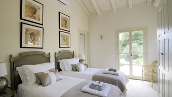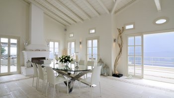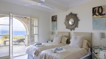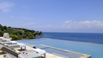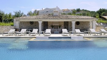 Innerhalb des Hauses vervollständigen ein Kinoraum, ein Fitnessraum, eine Sauna und ein Dampfbad die sieben Schlafzimmer; und der Concierge-, Haushälterinnen- und Küchenchef-Service (inklusiv für 2019) sorgen für ein zusätzliches Maß an luxuriöser Freizeit. Draußen bietet sich ein atemberaubender Infinity-Pool mit Blick auf das Meer, der von einem üppigen Poolhaus bedient wird, und ein Netz von Wegen führt zu einem Kieselstrand und zu einem Steg, der mit der Schwestervilla, dem Atolikos House, geteilt wird. Dieser idyllische Rückzugsort ist nur 15 Minuten zu Fuß von Kassiopi entfernt.