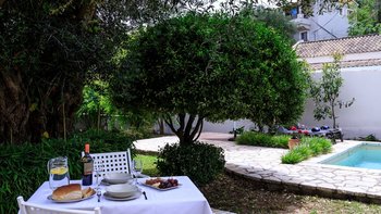 Ein eher romantischer Rückzugsort für zwei Personen, dies ist eine traditionelle korfiotische Villa, in zeitlos ruhigen und farbenfrohen Gärten, mit der modernen Ergänzung eines privaten Swimmingpools.
