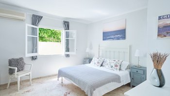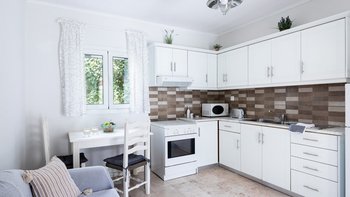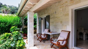 Umgeben von herrlichen Gärten, die das Haus polstern, war Margarita schon immer eine beliebte Wahl für Paare, die den korfiotischen Lebensstil lieben. Denen kleine Villa verfügt über eine einfach eingerichtete Küche/Esszimmer, ein Duschbad und ein Schlafzimmer mit Doppelbett, das sich auf eine schattige Veranda öffnet. Bequeme Stockstühle machen es zu einem schönen „Wohnzimmer“ im Freien, mit Blick auf die Sträucher, Kübel und alten Bäume des Gartens, zusammen mit einem einladenden Swimmingpool. Obwohl der charmante traditionelle Charakter der Margarita beibehalten wird, beinhaltet das Upgrade auch weniger offensichtlichen modernen Komfort, vom WLAN bis hin zur Klimaanlage im Schlafzimmer, wodurch die Nachfrage der Villa nach wie vor hoch ist.Eine Sache, die niemand ändern möchte, ist die ausgezeichnete Lage, nur fünf Minuten zu Fuß vom Strand von St. Stephano entfernt und noch näher an Geschäften, Tavernen und dem Hafen. Eines von zwei benachbarten Schwestervillen, das zusammen mit Eleni gebucht werden könnte, um einen komfortablen Cluster für Familie oder Freunde zu bilden.