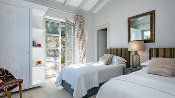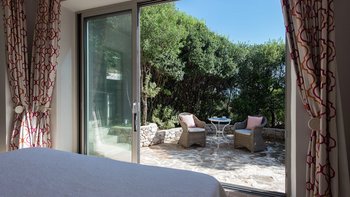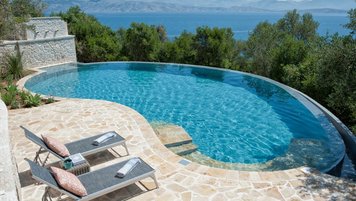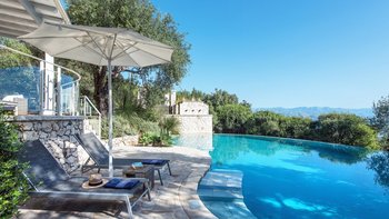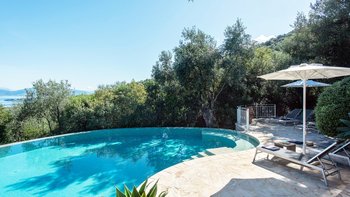 Eingebettet in versilberte Olivenhaine an einem ruhigen Küstenhang bietet diese ausgezeichnete Luxusvilla Meerblick vom außergewöhnlichen Pool aus, alles in einer ruhigen Umgebung.