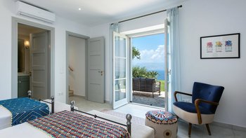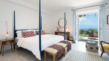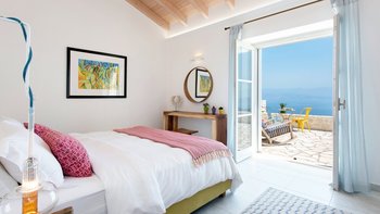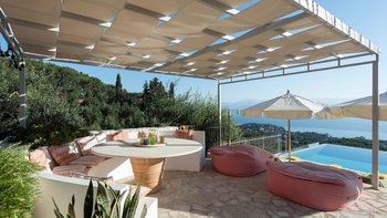 Oleander ist eine Villa mit fünf Schlafzimmern inmitten von Olivenhainen an der Nordostküste Korfus und bietet einen magischen Blick auf das Meer auf die donnerspaltenden Gipfel der albanischen Ceraunischen Berge, die über die Straße von Korfu zu sehen sind. Mit geräumigen umlaufenden Terrassen und ausgezeichneten Essbereichen im Freien ist diese Villa für den geselligen Reisenden konzipiert, was sie ideal für Familien und kleine Gruppen von Freunden macht. Es gibt sogar eine Katze in der Villa, genannt Feta.