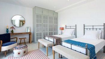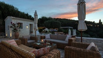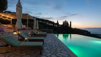 Es gibt einen gut gestalteten Fluss durch das gesamte Anwesen, zusammen mit einem wundervoll dekorierten Interieur. Im Erdgeschoss geht der OFFENER GRUNDRISS Wohnbereich der Villa intuitiv in die Küche über, an die sich ein stabiler steinerner Torbogen anschließt, der den freien Lichtfluss von Raum zu Raum fördert. Dieser Bereich verfügt über große Fenster und angrenzende Terrassen, so dass die Gäste den ganzen Tag über die sonnenverwöhnte Aussicht auf Korfu genießen können. Denen fünf geräumigen Schlafzimmer verfügen jeweils über ein eigenes Bad und eine eigene Aussicht, da sie sich jeweils auf Panoramaterrassen öffnen und direkten Zugang zum Poolbereich bieten, so dass die Gäste den Tag in völliger Ruhe beginnen und beenden können. Unten auf der Gartenebene gibt es ein einladendes Home-Fitnessstudio und ein Spielezimmer für die Gäste.