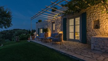Das Äußere der Villa ist es, was Oleander wirklich zu einer herausragenden Immobilie macht. Mit überdachten Essbereichen im Freien, einem Infinity-Pool, der die Farben des Ozeans ergänzt, und schönen Sitz- und Liegebereichen im Freien gibt es unzählige Orte, an denen Sie sich entspannen und einfach Ihre Umgebung genießen können. Der Kochservice ist während der Hochsaison in Oleander inbegriffen, so dass Sie während Ihres Aufenthalts köstliche Mahlzeiten genießen können, die Sie in der Privatsphäre Ihrer Villa zubereiten können. Sie können sie drinnen, unter dem Sternenhimmel oder draußen in der Sonne genießen. Kassiopi ist die nächste Stadt der Villa nur zwei Kilometer entfernt mit einer Reihe von Supermärkten, Bars, Apotheken, Restaurants und einem malerischen Strand mit beruhigendem azurblauem Wasser.