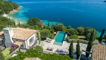 Ein herrliches Haus in einer atemberaubenden Umgebung direkt über dem Meer, diese Luxusvilla auf Korfu ist geschickt entworfen, um sehr modernen Komfort mit bezauberndem Inselcharakter zu verbinden.