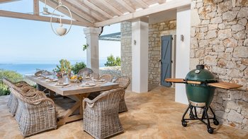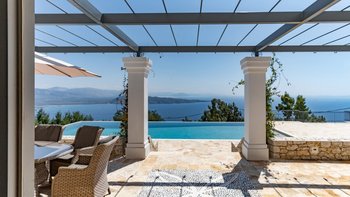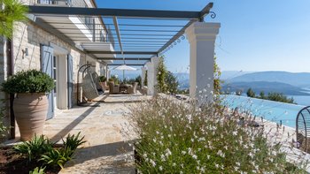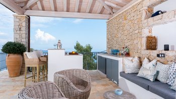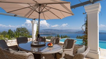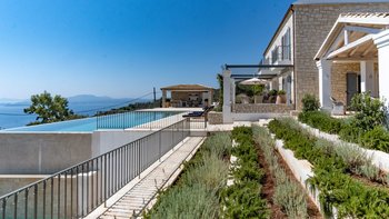 Seraphina ist eine makellose, moderne Villa auf Korfu, ideal gelegen mit einem außergewöhnlichen Blick auf das Meer. Dieser Villa ist Teil der ABOVE-Kollektion von CV Villas und beinhaltet einen Concierge-Service sowie einen Koch-Service zum Frühstück und eine weitere Mahlzeit im Juli und August. Seraphina wurde kürzlich in einem modernen und stilvollen Design renoviert und bietet viel Platz für Familien und große Gruppen. Deren Erdgeschoss verfügt über eine helle und luftige offene Küche und einen Wohnbereich mit Zugang zu einer Essterrasse im Freien. Im unteren Erdgeschoss befinden sich drei geräumige und moderne Doppelschlafzimmer, jedes mit eigenem Bad. Auf dieser Etage befindet sich auch ein Weinkeller. Im ersten Stock befinden sich drei weitere Doppelschlafzimmer mit eigenem Bad, von denen jedes einen Balkon hat. Deren Master-Suite verfügt sogar über ein luxuriöses Tauchbecken auf dem eigenen Balkon. Im Außenbereich gibt es einen Privater Pool, einen Loungebereich und einen schattigen Ess- und Barbereich im Freien. Es gibt auch eine einzigartige Yoga-Terrasse.