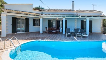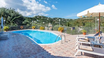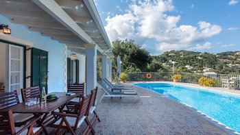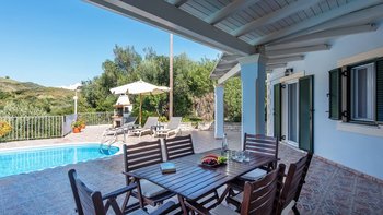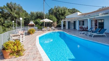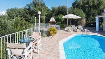 Umgeben von einem natürlichen Schatten versilberter Olivenbäume und mit Blick auf den Hafen von St. Stephano, nur einen kurzen Spaziergang entfernt, ist diese Familienvilla auf Korfu kühl, ruhig, komfortabel und praktisch.