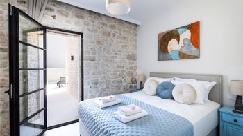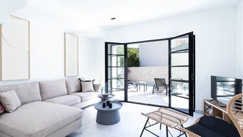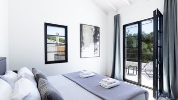In der Villa strömt das Tageslicht ungehindert von Raum zu Raum durch den OFFENER GRUNDRISS Wohn-, Ess- und Küchenbereich, wodurch ein heller und luftiger Raum geschaffen wird, in dem die Gäste Kontakte knüpfen können, während sie die vielen modernen Annehmlichkeiten der Villa genießen. Beiden Schlafzimmer mit eigenem Bad sind komfortabel, geräumig und gut eingerichtet und bieten direkten Zugang zur Terrasse und zum Poolbereich. Für einen entspannteren Aufenthalt können die Gäste gegen Aufpreis einen Kochservice in der Villa in Anspruch nehmen sowie Wein- und Lebensmittellieferungen. Weitere optionale Extras im Toulas House umfassen Wellnessbehandlungen, Wäscheservice und Babysitting. Es gibt auch Klimaanlagen in der gesamten Villa.