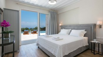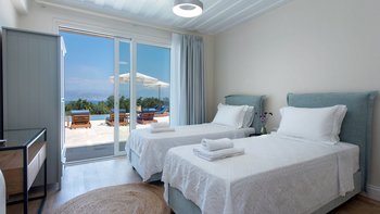 Ein stilvolles Refugium mit sechs Schlafzimmern, nur wenige Minuten vom Avlaki Beach entfernt, verbindet die Villa Cassopo modernen Komfort mit einfachem Zugang zu Korfus pulsierender Küste.