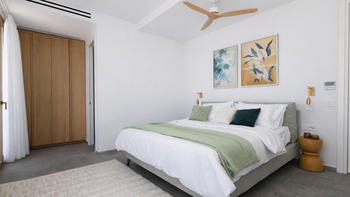 Acht sorgfältig eingerichtete Zimmer für bis zu 18 Personen bieten Flexibilität für Familien mit mehreren Generationen oder große Gruppen von Freunden. Auf der Eingangsebene befinden sich fünf Zimmer mit Bad, die direkt zum Garten führen, sowie ein Zweibettzimmer, das sich ideal für Kinder eignet. Im unteren Erdgeschoss befinden sich zwei luxuriöse Suiten mit Jacuzzi-Badewannen, separaten Duschen und Sitzbereichen. Auf dieser Ebene befinden sich auch ein Kinoraum, ein Fitnessraum, ein Massageraum und eine weitere voll ausgestattete Küche, die einen in sich geschlossenen Raum für Entspannung oder ein unabhängiges Leben schafft.