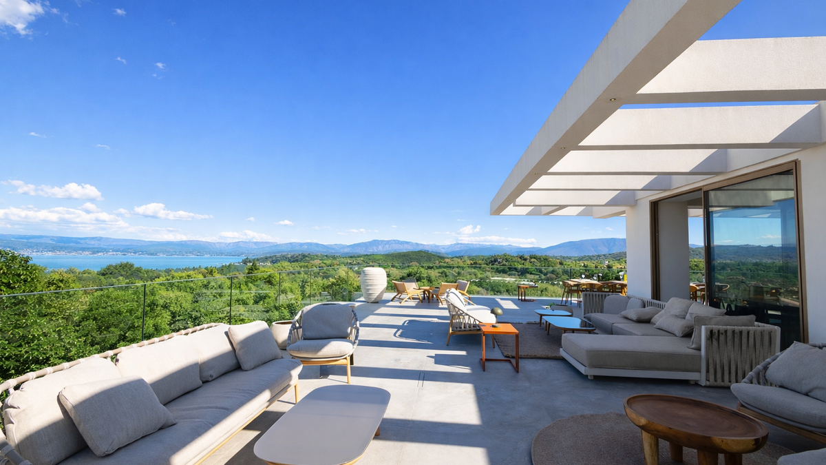 A sleek, sea-facing sanctuary above Kassiopi, Villa Nessya pairs far-reaching coastal panoramas with superb entertaining spaces, offering privacy and effortless comfort for large groups.