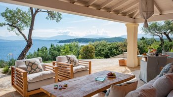 Die Villa Soukia befindet sich am Wasser in Kassiopi und bietet einen weiten Blick auf das Meer und direkten Strandzugang. Ins Innere ist das Anwesen geräumig und geschmackvoll eingerichtet. Von der Eingangshalle aus gelangen die Gäste in das schöne, große Wohnzimmer mit mehreren Fenstertüren, die den Raum mit Tageslicht durchfluten und sich auf die Terrasse öffnen. Deren moderne Küche ist komplett ausgestattet, während die Außenküche mit einem Holzofen ausgestattet ist. Im Erdgeschoss befinden sich drei Doppelschlafzimmer mit eigenem Bad, eines mit eigener Außendusche und das andere mit eigener Terrasse. Deren Hauptschlafzimmer befindet sich im ersten Stock und verfügt über ein eigenes Bad, ein Ankleidezimmer und eine eigene Terrasse, auf der Sie die Aussicht genießen können. In einem separaten Nebengebäude befinden sich weitere vier Doppelschlafzimmer mit Bad, ideal für Mehrgenerationenurlaube.