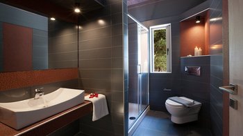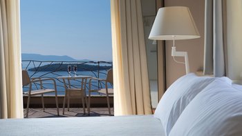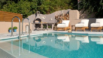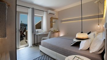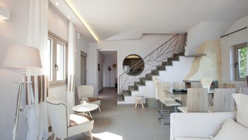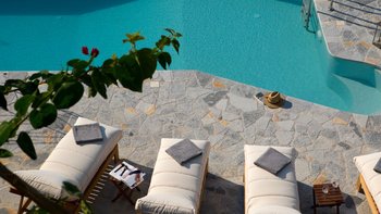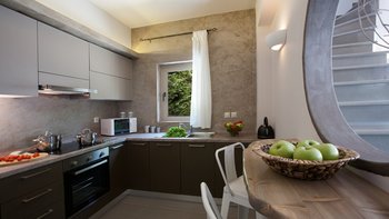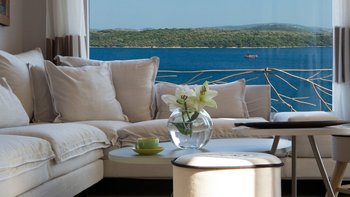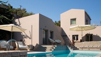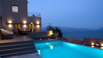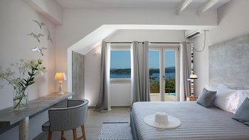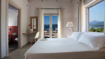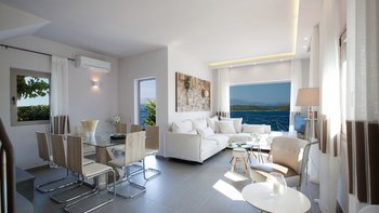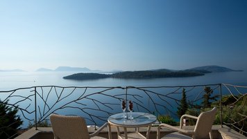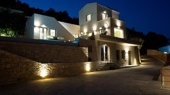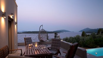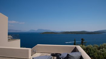 Innen und außen wunderschön gestaltet, ist diese moderne Villa mit atemberaubendem Blick über die Inseln Skorpios nur 450 m von einem hübschen Kiesstrand entfernt.