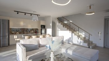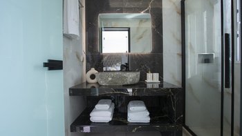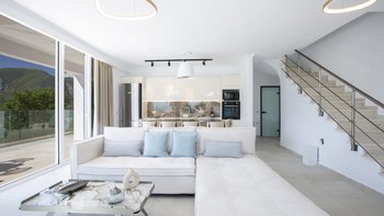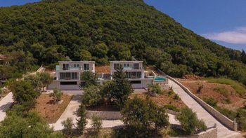 Aiolos ist eine elegante und eindrucksvolle Immobilie in Lefkada, perfekt gepolstert mit den besten Panoramen auf die Bucht darunter. Deren Villa ist architektonisch modern und sehr stilvoll, mit einem sehr hohen Standard an Ausstattungen. Im Erdgeschoss befindet sich ein minimalistischer, offener OFFENER GRUNDRISS mit gemütlichen Sofas, einem Essbereich und Fenstern mit Blick auf die Poolterrasse und die umliegenden und umliegenden Hügel. Ein helles und luftiges Zweibett-Schlafzimmer, gepaart mit einem Duschbad en suite, befindet sich ebenfalls hier. Über die Treppe gelangen Sie zu zwei schönen Doppelzimmern, jedes mit einem Duschbad en suite und zu einem gemeinsamen Balkon.