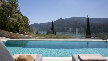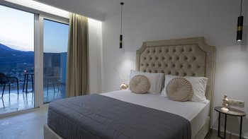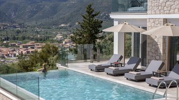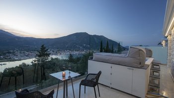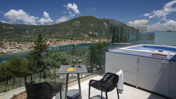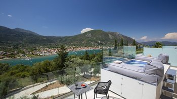 Im Aiolos in Lefkada sind atemberaubende Ausblicke auf die Bucht, eine stilvolle, moderne Einrichtung und ein wohltuender beheizter Jacuzzi perfekt aufeinander abgestimmt.