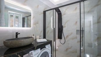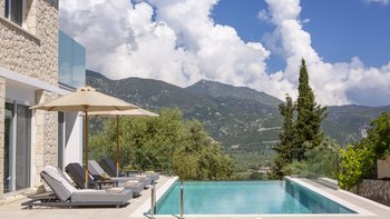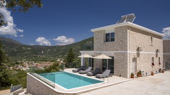 Auf dem Balkon können die Gäste das besondere Stück der Villa genießen: einen gut platzierten, beheizten Whirlpool, gepaart mit einem Essbereich im Freien. Darüber hinaus ist die sonnige Poolterrasse mit bequemen Liegen ausgestattet und bietet einen außergewöhnlichen Panoramablick. Denen Villa ist ideal gelegen, nur 10 Fahrminuten vom Strand und Nidri entfernt, wo es eine Auswahl an guten Restaurants, Einkaufsmöglichkeiten und Bootsverleih gibt.