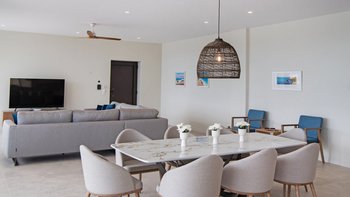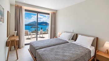 Im ersten Stock der Villa befinden sich alle sechs Schlafzimmer, die jeweils über ein eigenes Bad verfügen. Denen Zimmer sind mit maßgefertigten Möbeln aus massiver Eiche und luxuriösen Möbeln mit natürlicher Textur dekoriert, die der Villa eine wirklich unverwechselbare Note verleihen. Jedes Badezimmer verfügt über eine eigene begehbare Dusche. Der Villa hat ein sehr helles und luftiges Ambiente, mit dem offenen Grundriss Wohn- und Küchenbereich im Erdgeschoss mit einer Frühstückstheke, die sich auf die Terrasse öffnet, ein idealer Ort für ein Essen mit Aussicht zu jeder Tageszeit.