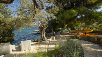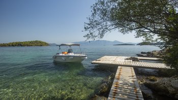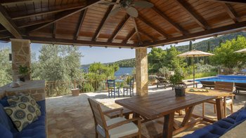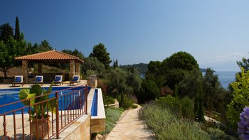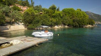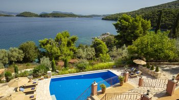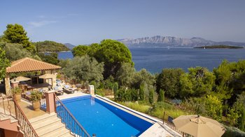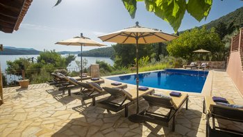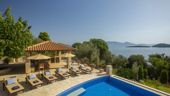 Eine wunderbar komfortable Luxusvilla in Lefkada, mit herrlichem Meerblick von der abgeschiedenen Lage direkt am Meer, direktem Zugang zu zwei Stränden und Bootsanleger direkt darunter.