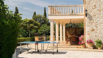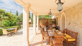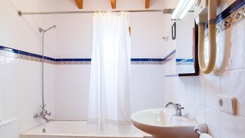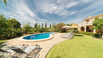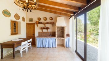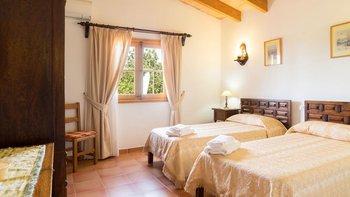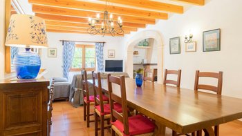 Ca’n Elvera ist ein robustes Steinhaus inmitten wunderschöner Gärten und verbindet den Charakter der alten Welt mit modernem Komfort und einem Gefühl der Abgeschiedenheit mit einfachem Zugang zu Annehmlichkeiten. Im Außenbereich laden ein attraktiver, nierenförmiger Swimmingpool, der von den hübschen gepflegten Gärten umgeben ist, und eine Tischtennisplatte zum Spielen im Freien ein. Das Innere der Villa ist hell und luftig und im lokalen Stil eingerichtet. Ebenso attraktiv für Familien oder Gruppen von Freunden, ein Steinbogen trennt das komfortable offene Grundriss- und Sitzungszimmer von der großen, gut ausgestatteten Küche mit Frühstücksbereich. Es gibt auch einen weiteren Raum auf der Rückseite des Grundstücks, der von der Küche mit Grillplatz und Duschraum aus zugänglich ist. Die Villa verfügt über ein Hauptschlafzimmer mit Doppelbett und eigenem Bad und zwei Doppelschlafzimmer im ersten Stock, alle von guter Größe und mit Klimaanlage. Des Hauptschlafzimmer und eines der anderen Zweibettschlafzimmer öffnen sich zu einer sonnigen Terrasse an der Vorderseite des Anwesens. Des anderen Zweibettschlafzimmer teilt sich ein großzügiges Bad. Deren Villa befindet sich in einer leicht zugänglichen, sehr privaten und günstigen Lage, nur 4 km von der Altstadt von Pollensa mit vielen Geschäften, Bars und Restaurants und 7 km von den herrlichen Sandstränden von Alcudia, Puerto Pollensa und Cala San Vicenc entfernt.
