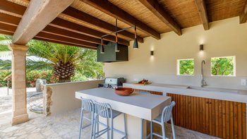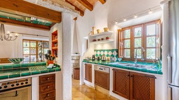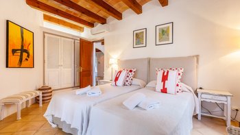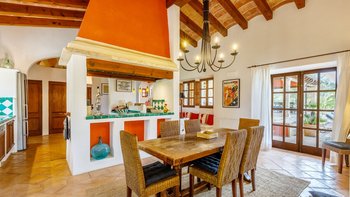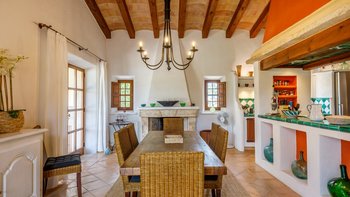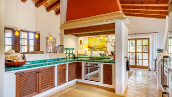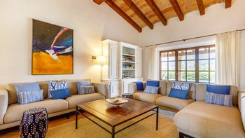 Diese Luxusvilla befindet sich entlang einer von Zypressen gesäumten Auffahrt und ist eine gelungene Kombination aus feinen Einrichtungen und schönem Design. In einer Umgebung, in der Wanderwege, Wassersportarten, der Golfplatz und die belebten Plätze der Altstadt von Pollensa leicht zu erreichen sind. Unter den Balkendecken der Innenräume des Ca’n Tierra werden traditionelle Stücke mit modernen Kunstwerken gegenübergestellt, Fliesenböden sind mit orientalischen Teppichen bestreut und es gibt eine sehr moderne Note des Landhausstils. Besonders bemerkenswert ist die gut ausgestattete Küche, die zu einem attraktiven Speisesaal führt und auf die Grillterrasse führt.