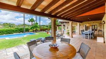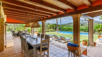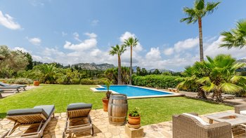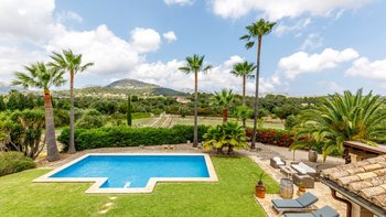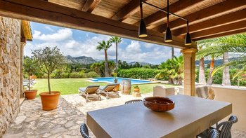 In den Ausläufern des Tramuntana-Gebirges liegt diese geräumige und elegante Familienvilla in der Nähe von Geschäften und Restaurants im alten Pollensa, und von Sandstränden und Bootsverleih an der Bucht.
