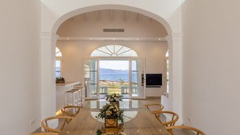 Die Villa ist in natürliches Licht getaucht, dank der großen Fenster, die jede Ecke beleuchten und eine helle und einladende Atmosphäre schaffen. Eines der herausragenden Merkmale ist die vordere Terrasse mit spektakulärem Meerblick.