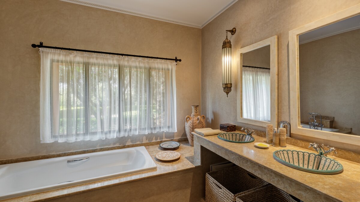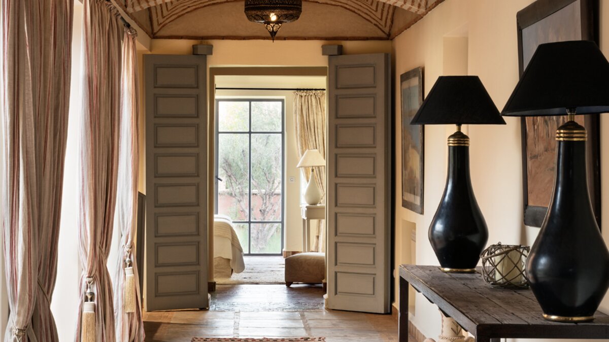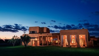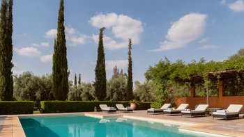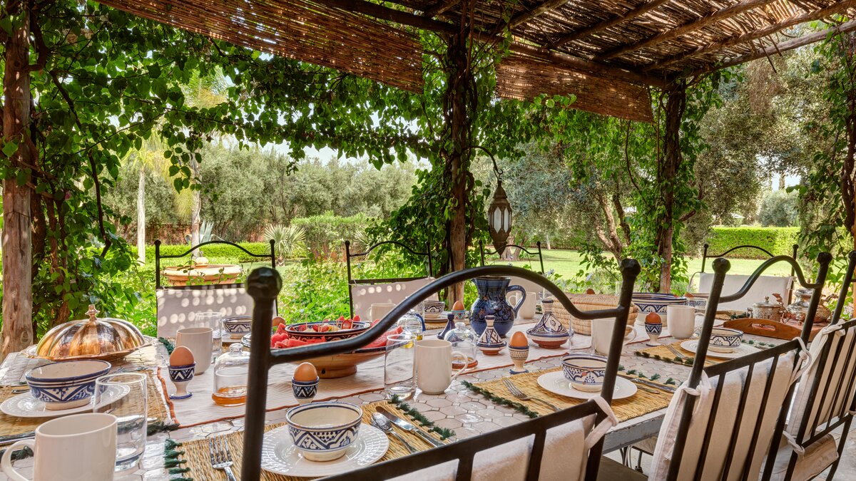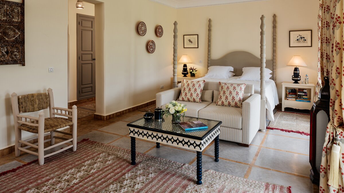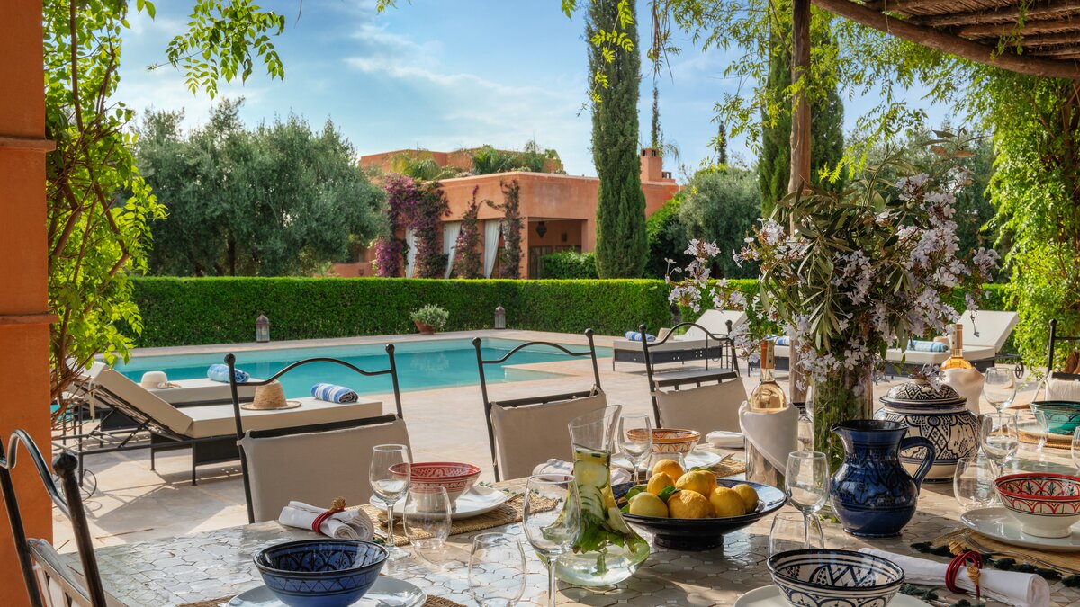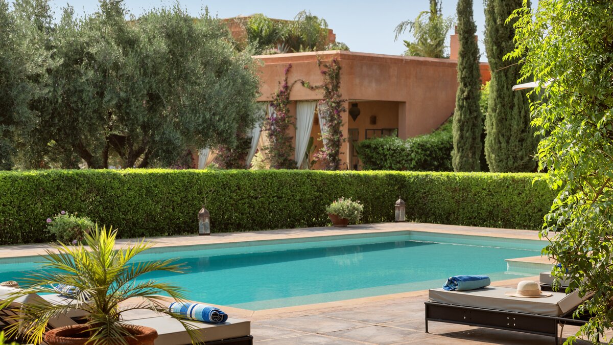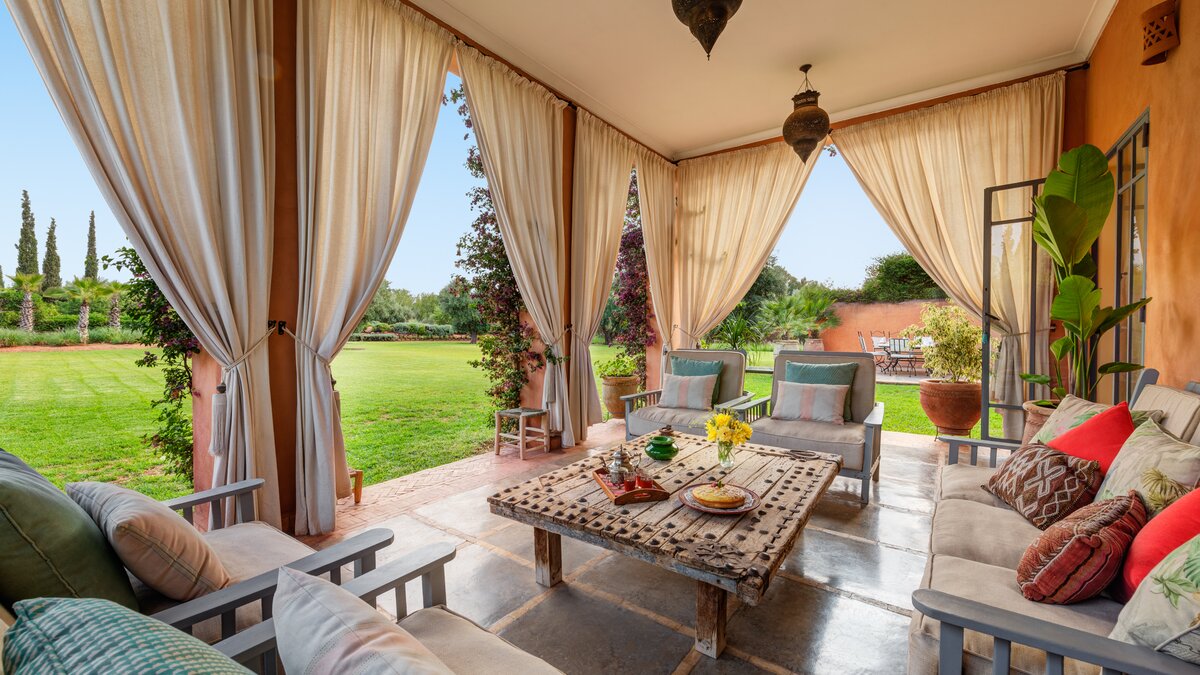Weit genug entfernt von Marrakesch, um die Ruhe seiner Oasenlandschaft zu genießen; nahe genug, nur 28 km entfernt, um das Treiben der lebhaften Basare der Stadt zu erleben, ist diese wunderschöne Villa ein gemütlicher Ausgangspunkt für Erkundungen. Mit dem Atlasgebirge als Kulisse, den Trekking-Enthusiasten zu ihren zerklüfteten Wegen lockt das ruhige, beruhigende Tempo der Villa dazu an, „zu Hause“ Tage im Leerlauf zu verbringen. Mit einem Koch unter den festen Mitarbeitern, einem kühlen Pool mit Liegen und Sonnenschirmen auf der gepflasterten Poolterrasse und schattigen Terrassen, die komfortabel eingerichtet sind, um im Freien zu speisen und zu entspannen, ist Dar al-Laimuna ein wunderschönes Haus, in dem die Inneneinrichtung eine stilvolle Mischung aus klassischer Eleganz und lokalem Charakter darstellt. Die Villa ist mit Teppichen übersät, mit kunstvollen Laternen beleuchtet, geschmackvoll eingerichtet und voll klimatisiert und verfügt über ein offenes Wohn-/Esszimmer mit Kamin an beiden Enden. Von den Terrassen führen Stufen hinauf zur möblierten Dachterrasse, einem perfekten Ort für einen abendlichen Drink. Deren Aufteilung der Unterkünfte ist einfach. Im Erdgeschoss befinden sich zwei sehr großzügige Zweibett-Schlafzimmer, ein hübsches und auch großes Schlafzimmer mit Doppelbett und ein Schlafzimmer mit Etagenbett, das über die Küche zugänglich ist. Im ersten Stock befindet sich das Hauptschlafzimmer mit einem romantischen Himmelbett mit eigener Terrasse und herrlichem Blick auf das Atlasgebirge. Es ist eine von nur acht Villen, die sich das private Anwesen teilen, wo die Gäste auch einen Tennisplatz und einen Fitnessraum nutzen können.