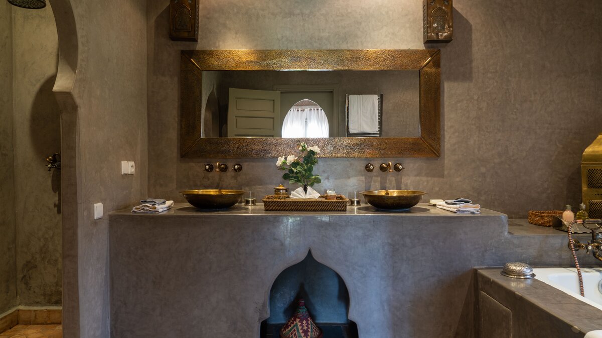 Das Innere der Villa ist makellos gepflegt, groß und geräumig, geschmackvoll in einer kühnen marokkanischen Farbpalette mit üppigen Textilien und komplizierten handgefertigten Lichtelementen eingerichtet. Ein helles und luftiges Wohnzimmer ermöglicht es den Gästen, sich bequem zu entspannen, Schach zu spielen oder im Freien zu speisen – mit Türen, die auf die Terrasse führen; Ein Fernsehraum fungiert auch als Bibliothek, mit der Möglichkeit eines Einzelbetts, das für ein Kind genutzt werden kann. Sechs beeindruckende Schlafzimmer und fünf fabelhafte traditionelle Bäder split befinden sich auf zwei Etagen, wobei die Master-Suite im ersten Stock einen Zugang zu einer privaten Terrasse und dem Dach bietet.