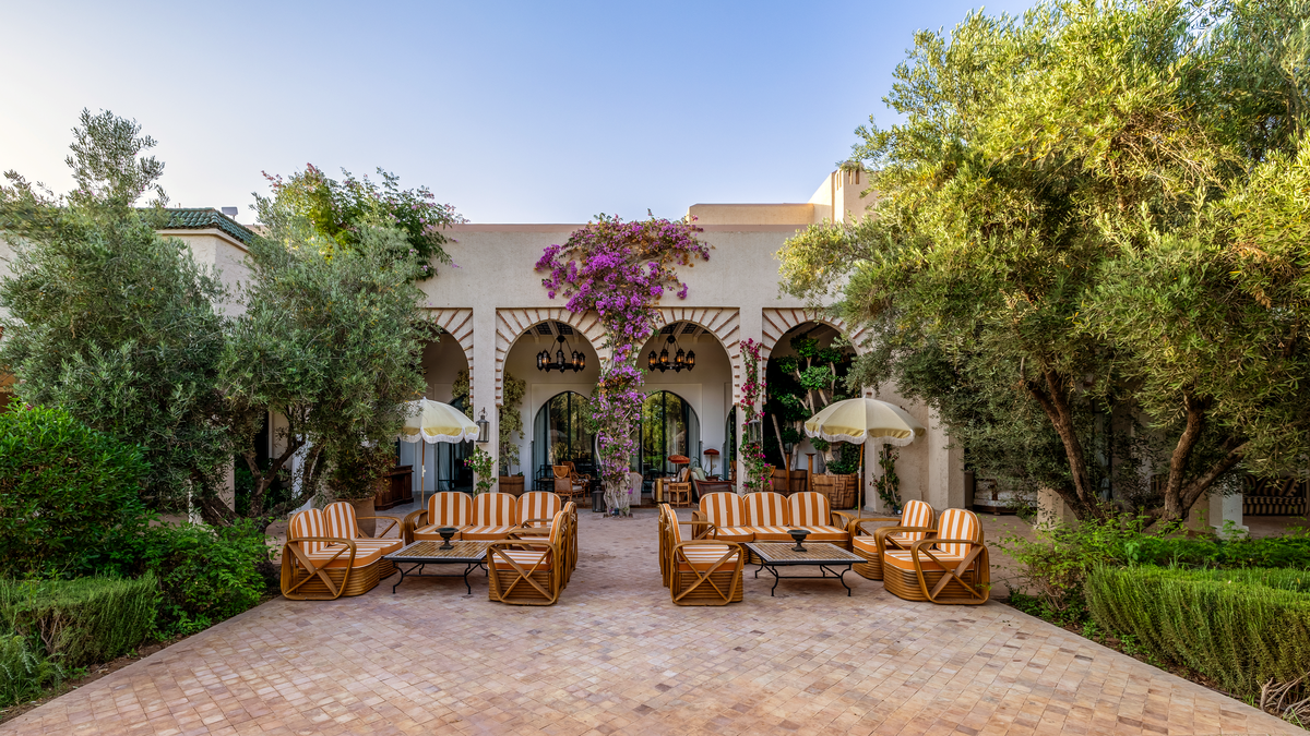 Ursprünglich für den Gründer des berühmten Nachtclubs Annabel’s in London erbaut, mit den Haupträumen, die vom renommierten Innenarchitekten Nicky Haslam entworfen wurden, befindet sich dieses herrliche und einzigartige Anwesen inmitten eines 5 Hektar großen, wunderschönen Gartens in der Nähe der pulsierenden Souks von Marrakesch sowie der atemberaubenden Landschaft des Atlasgebirges. Deren Eingang führt in einen beeindruckenden Innenhof im traditionellen Stil mit Brunnen und Speisesäle im Erdgeschoss sind elegant und sehr komfortabel. Im Obergeschoss bietet die herrliche Master Suite mit privater Terrasse einen weiten Blick auf das Atlasgebirge.