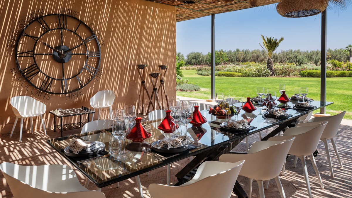 Im Außenbereich gibt es einen Acryltennisplatz, einen Grillplatz und eine Tischtennisplatte, um sich am Abend zu entspannen, während der zwanzig Meter lange Pool der Villa ideal ist, der in den Wintermonaten beheizt wird. Dar Jannah liegt in ländlicher Umgebung und genießt noch immer die Gesellschaft mehrerer nahe gelegener Sehenswürdigkeiten. Nur zehn Minuten Autofahrt entfernt liegt der königliche Golfplatz, während die pulsierenden Souks von Marrakesch 20 Minuten entfernt sind. Der Wasserpark Oasiria befindet sich etwas mehr als 13 Kilometer entfernt, gefolgt von dem Viertel Gueliz nur ein paar Kilometer weiter.